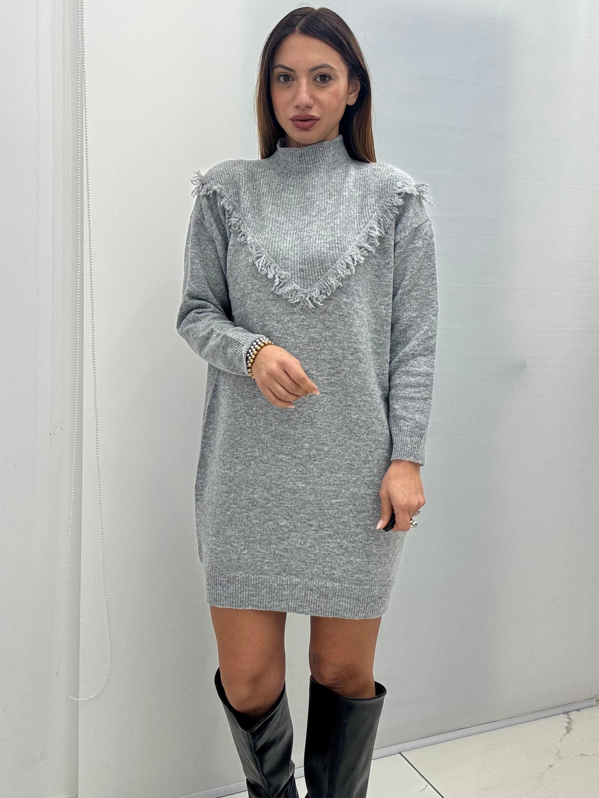 Abito in lana con frangia sul davanti. Taglia unica, consigliamo fino a taglia 46.