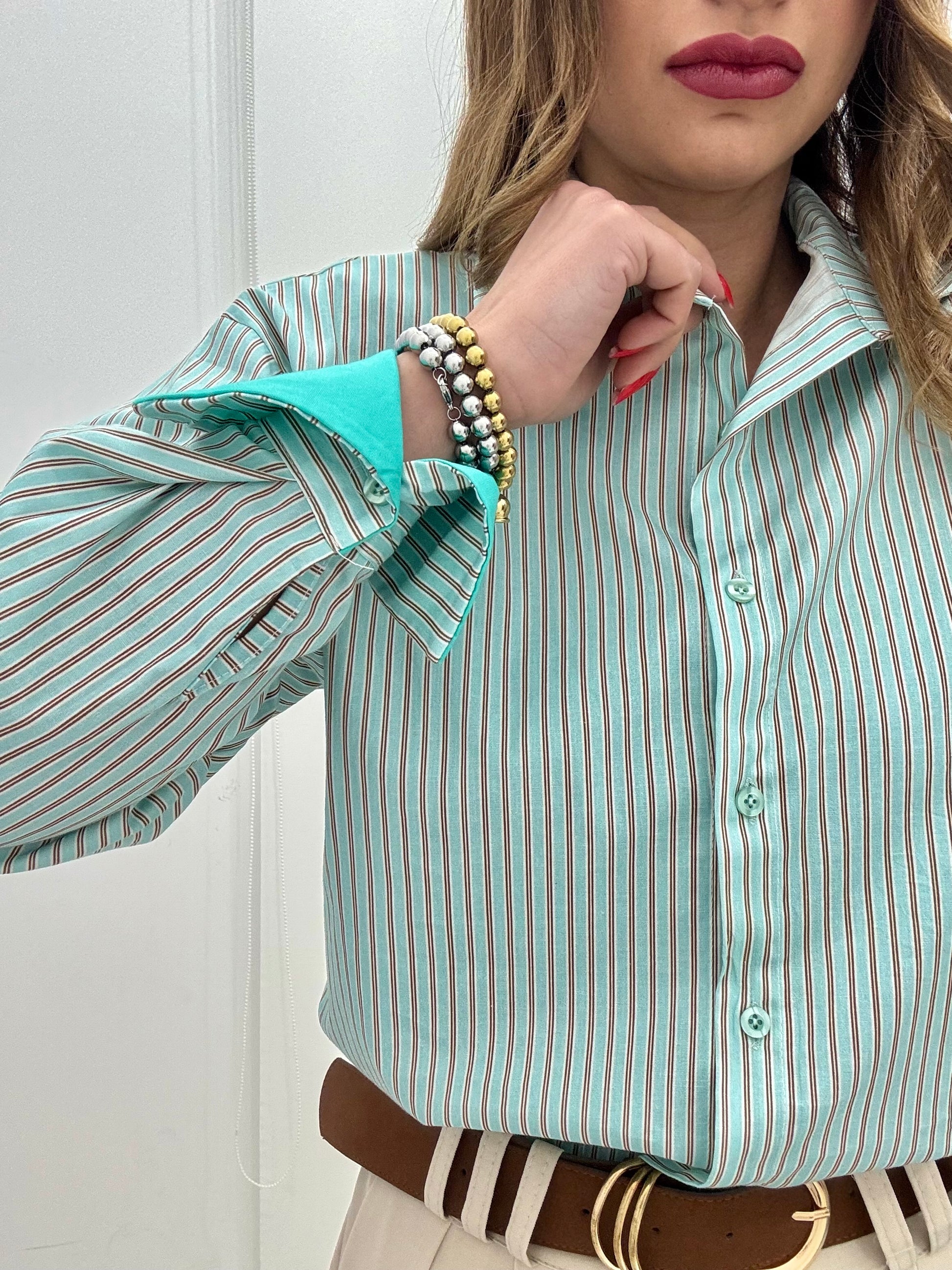 Camicia in cotone a righe con polsi a contrasto, taglia unica, consigliato fino a taglia L.