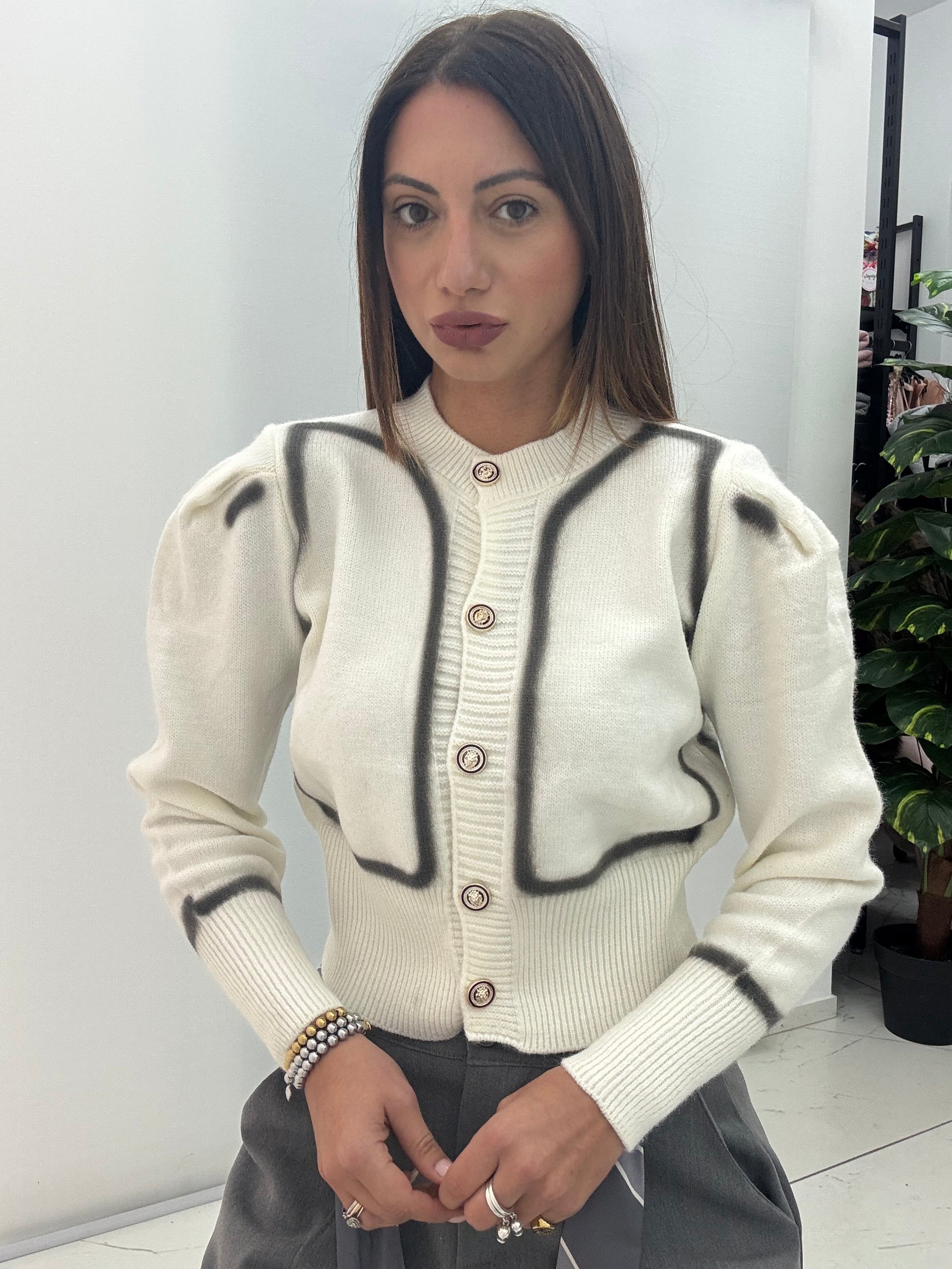Cardigan in lana rasata con manica palloncino e sfumature sia sul davanti che sul dietro. Taglia unica, consogliamo fino a taglia L.