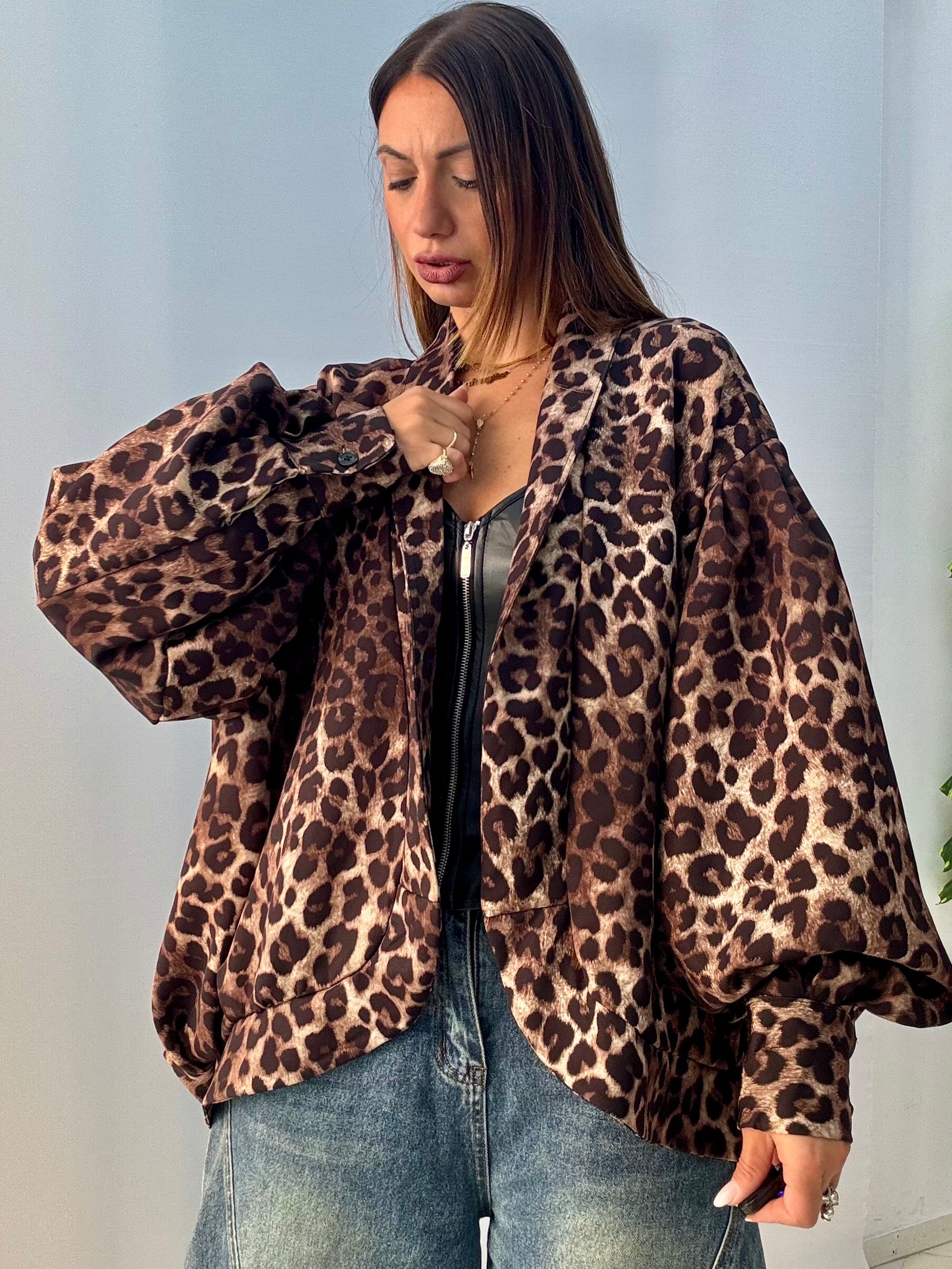 Giacca animalier oversize, tasche a scomparsa, foderata, taglia unica, consigliamo fino a taglia 46.