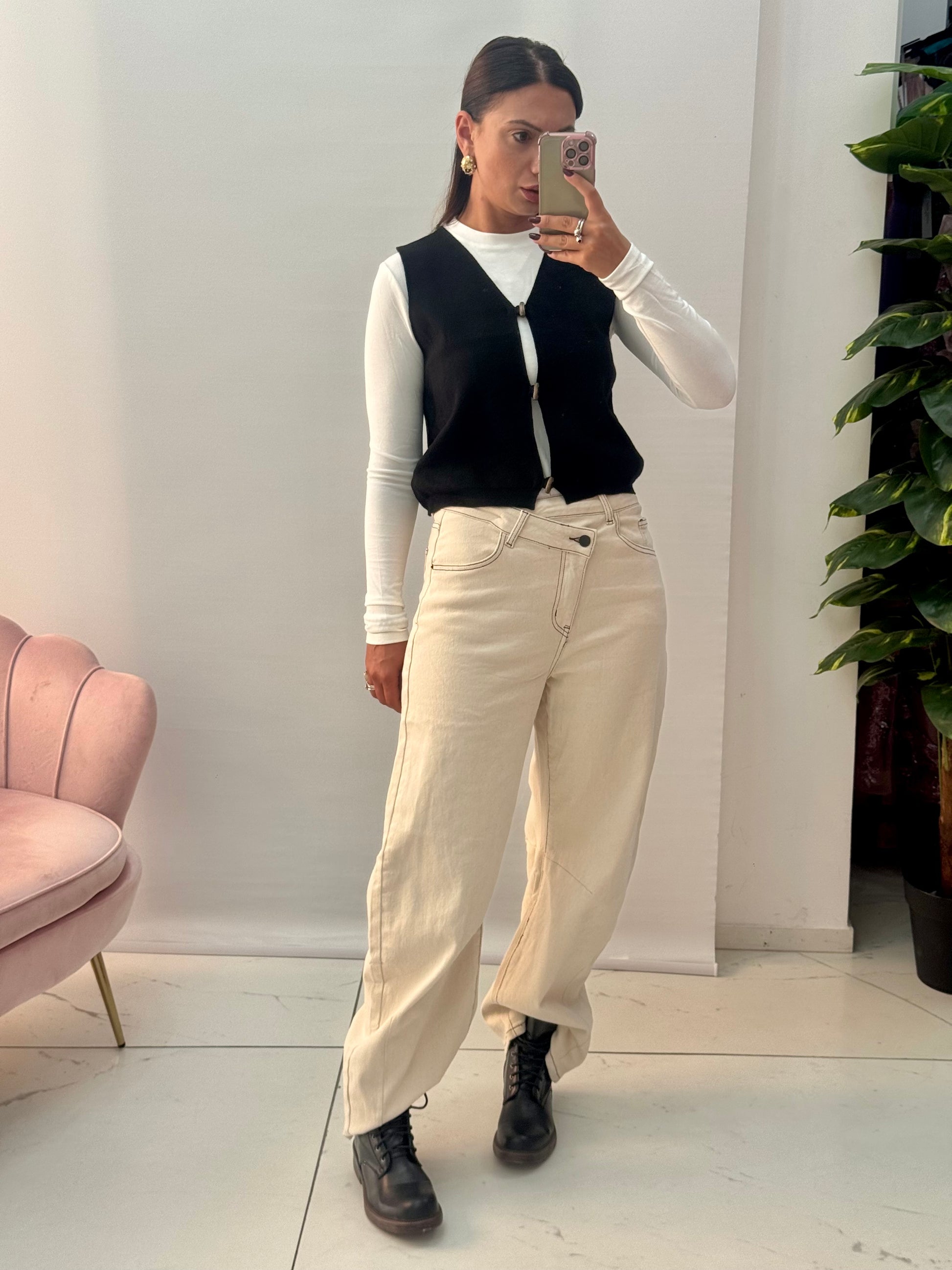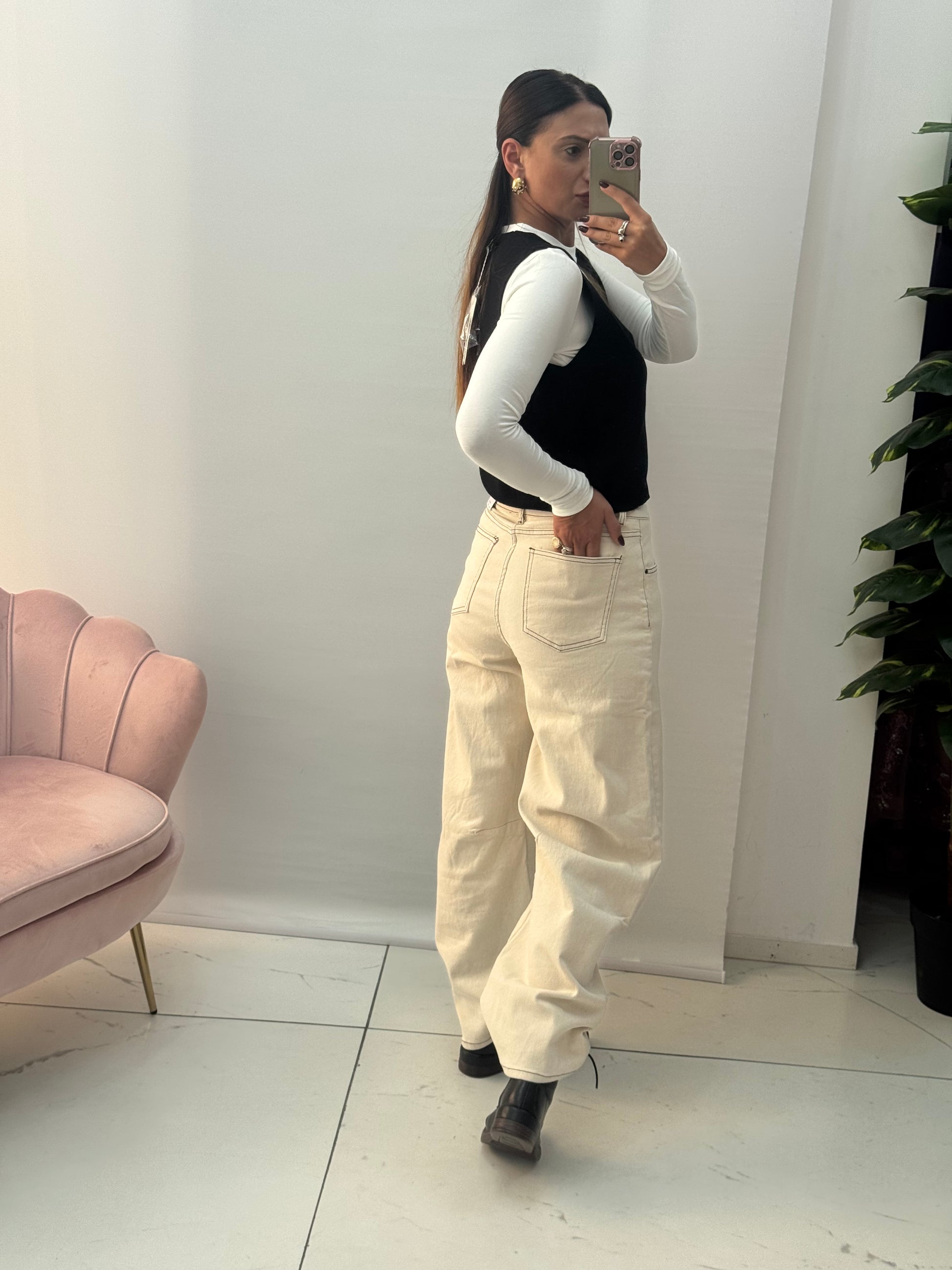 Jeans Ballon Asimmetrico Panna