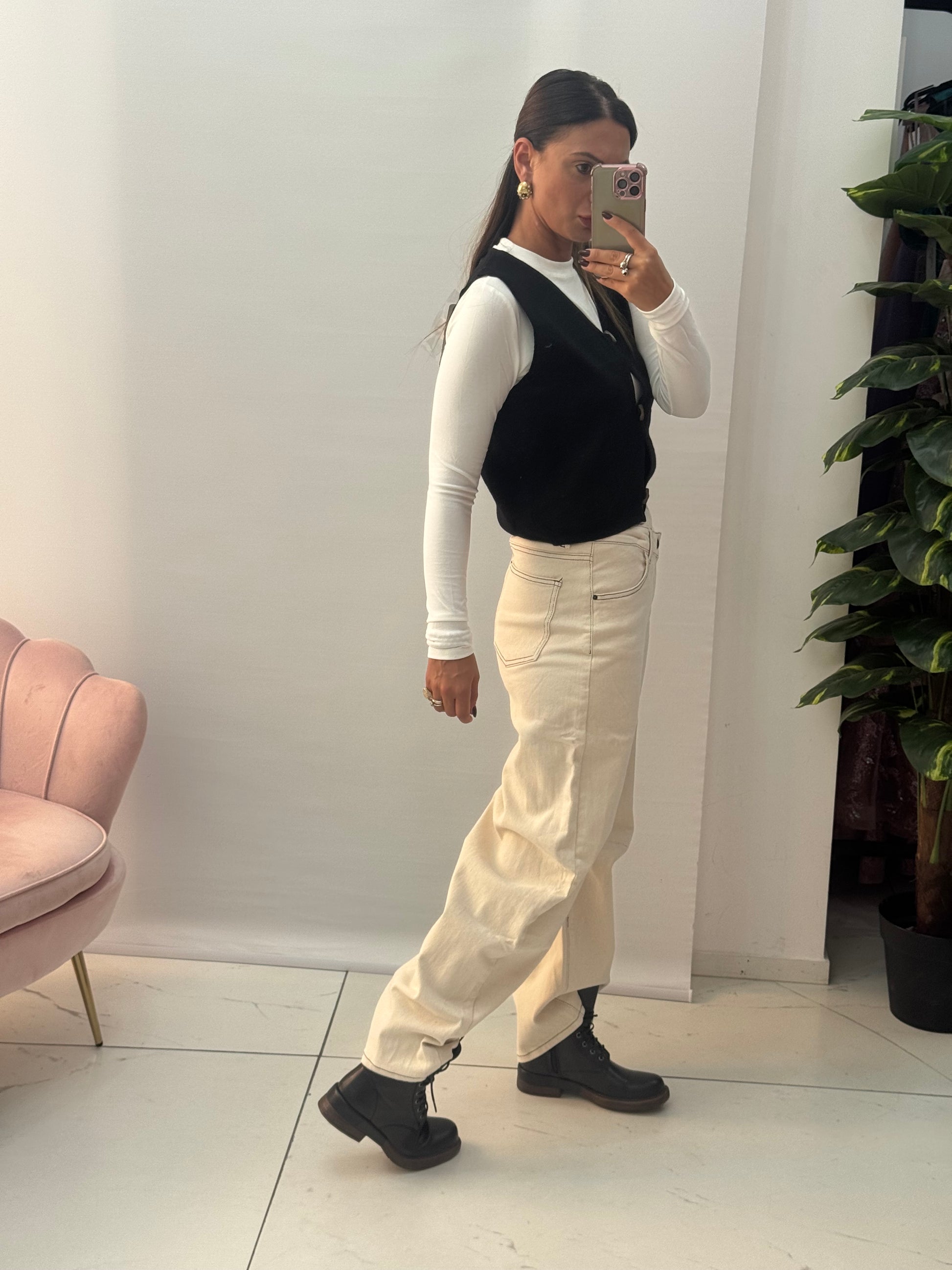 “Pantaloni con taglio che slancia: tessuto comodo, zero pieghe. Prenderò altri colori!”