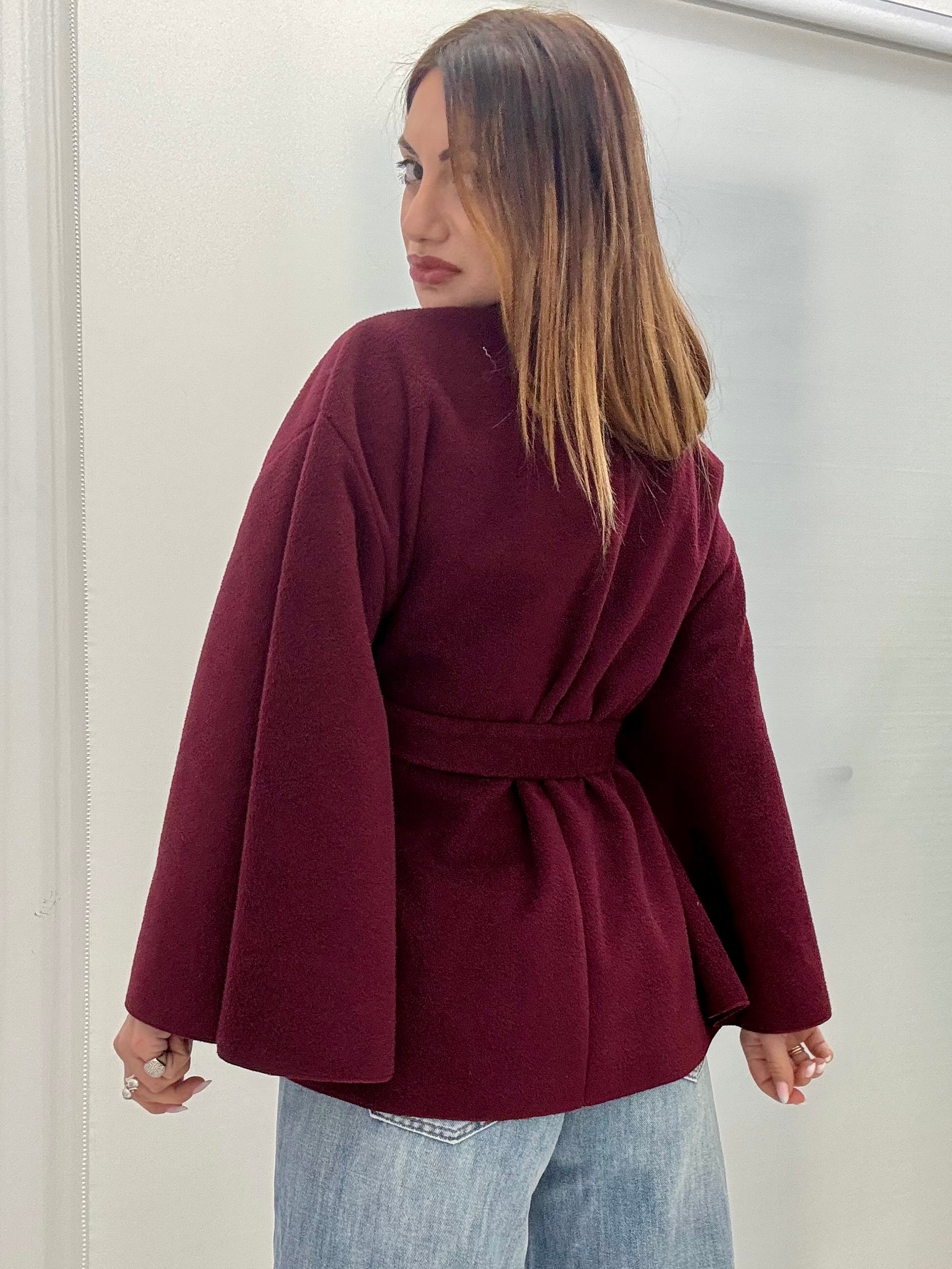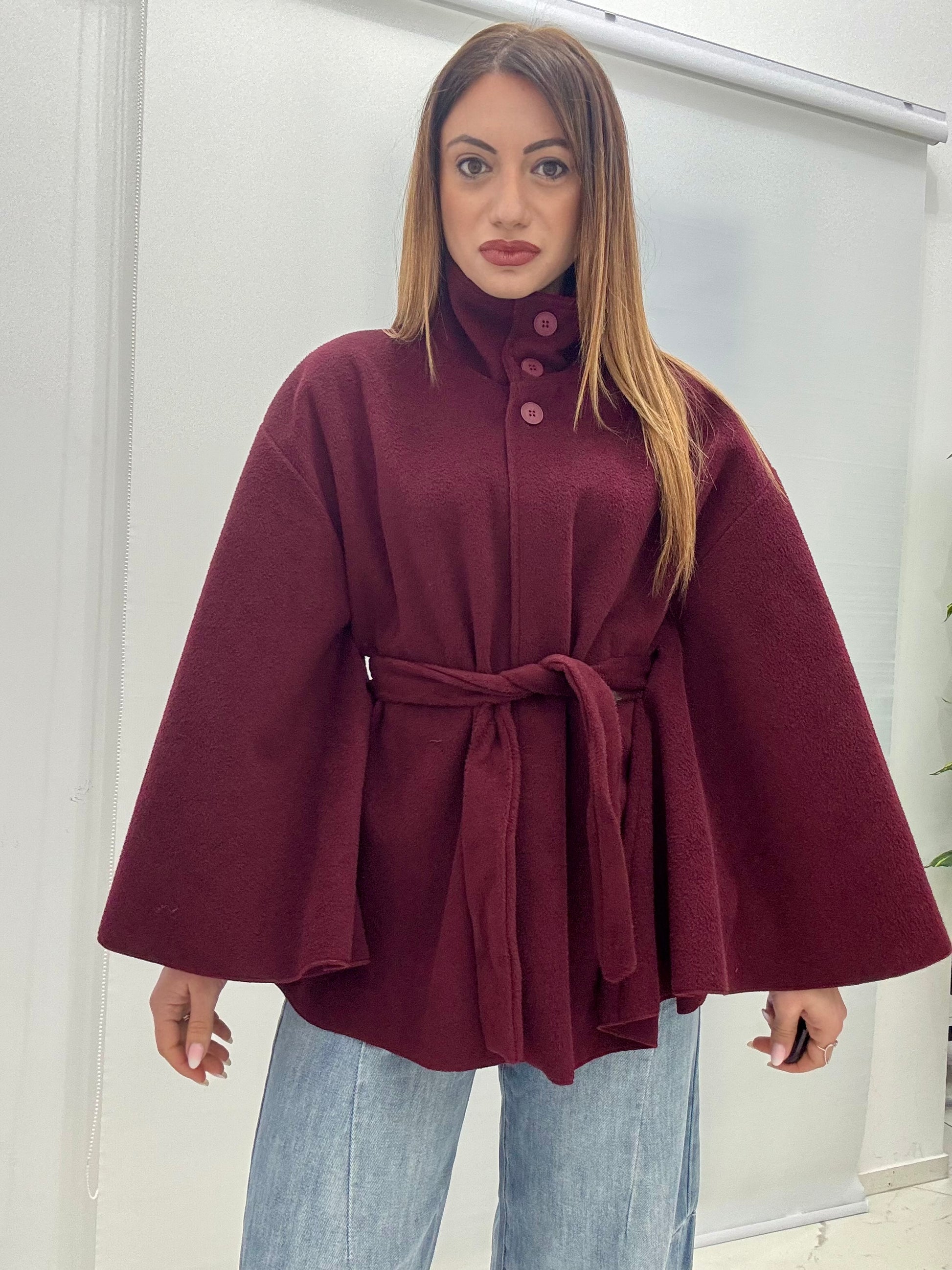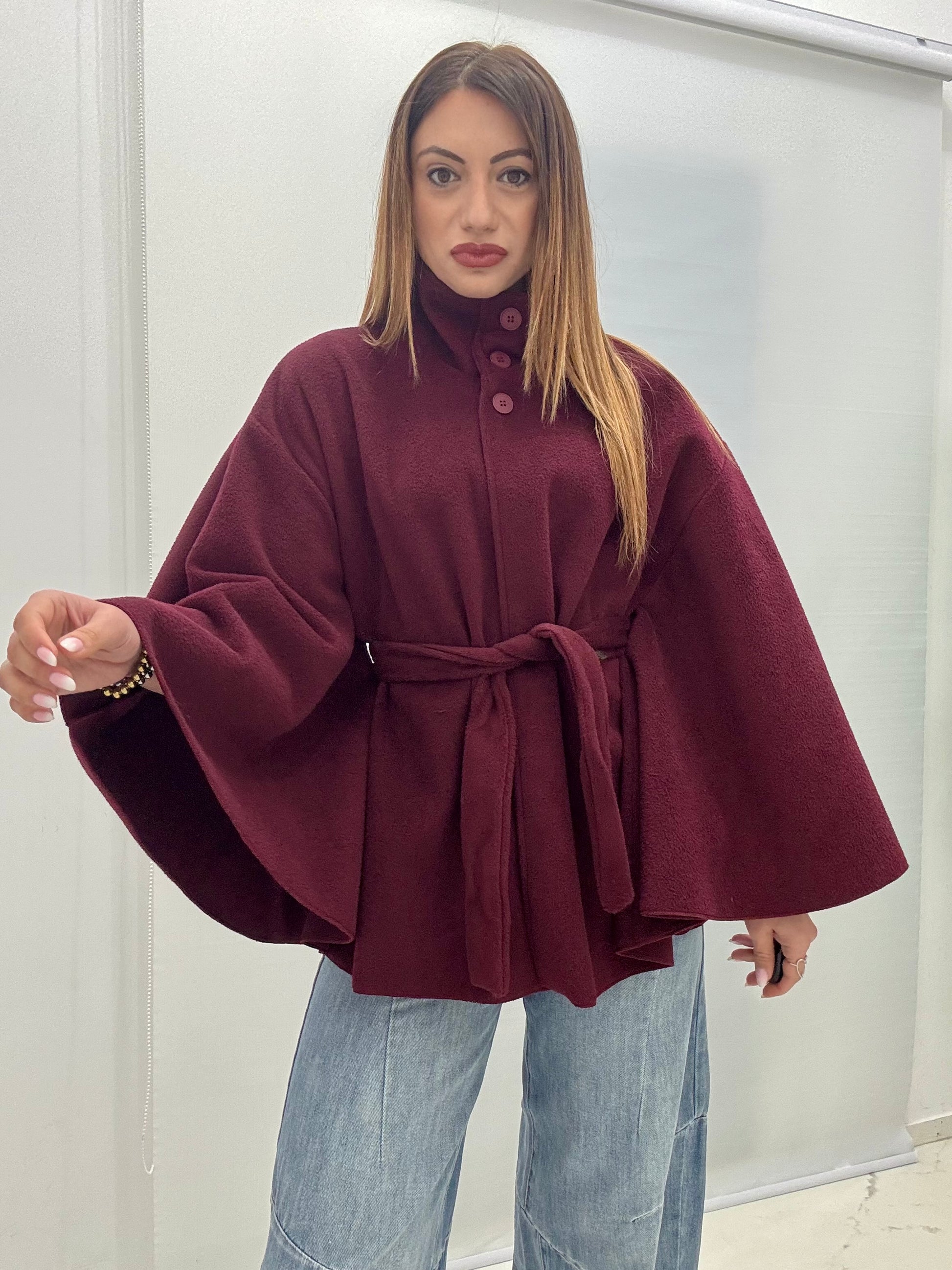 Mantella in panno con cintura in vita che consente di regolarne la vestibilità. Taglia unica, consigliato fino a taglia XL.