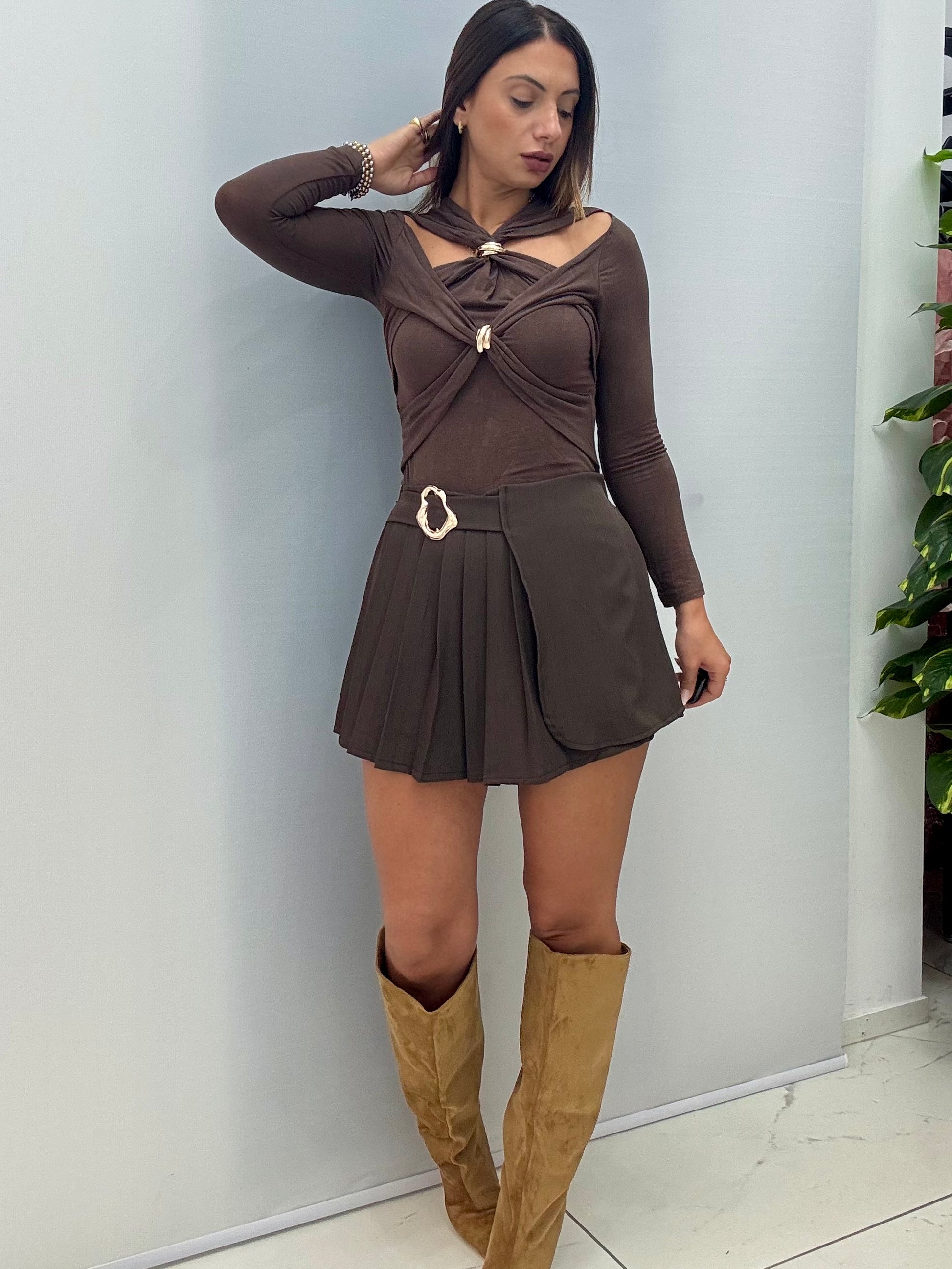 Pantagonna plissè sul davanti, inserto gioiello ed elastico sul retro, taglia unica, consigliamo fino a taglia 46.