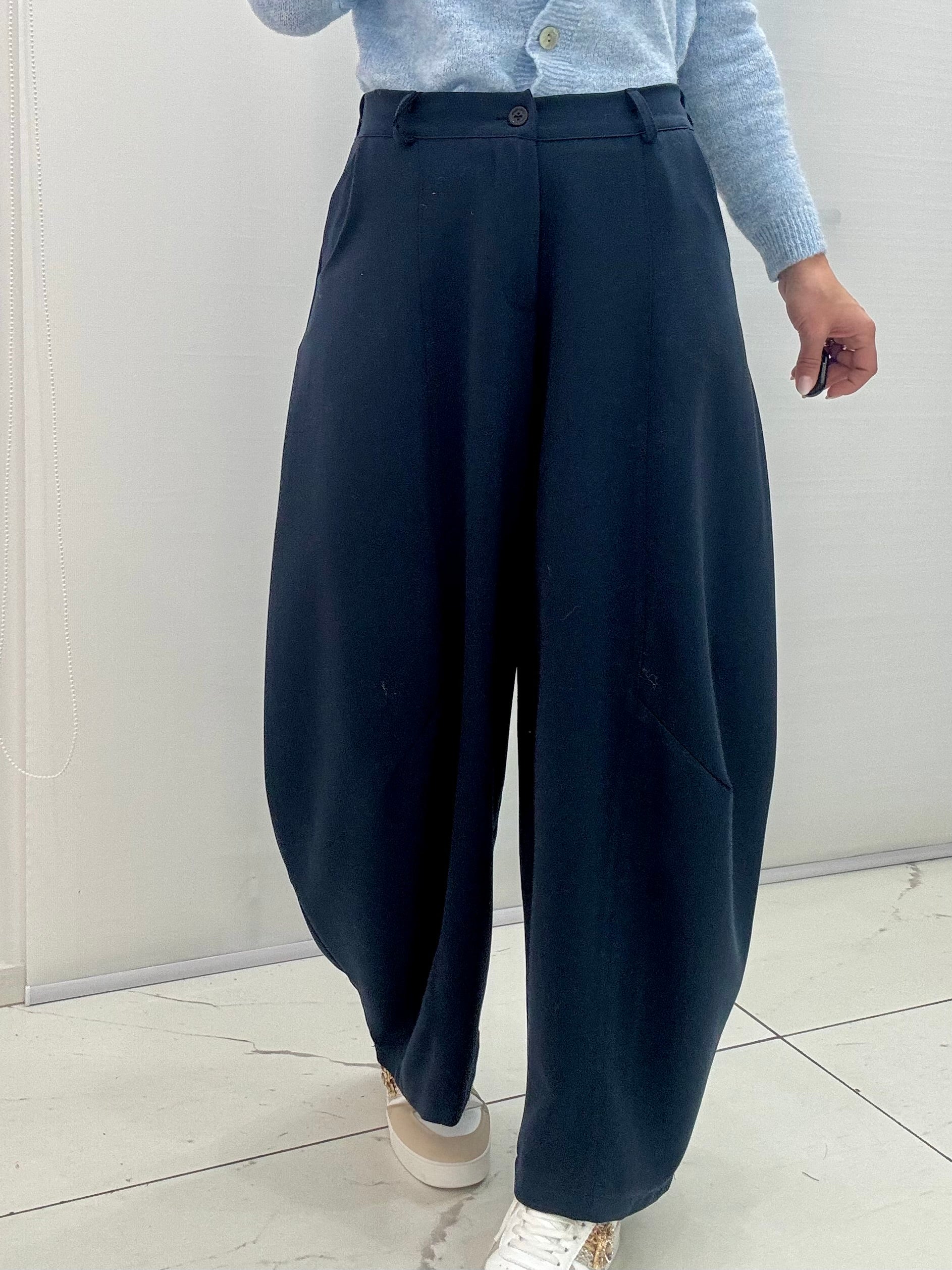 Pantalone modello ballon con zip e bottone sul davanti ed elastico sul retro, taglia unica, consigliamo fino a taglia 46-48
